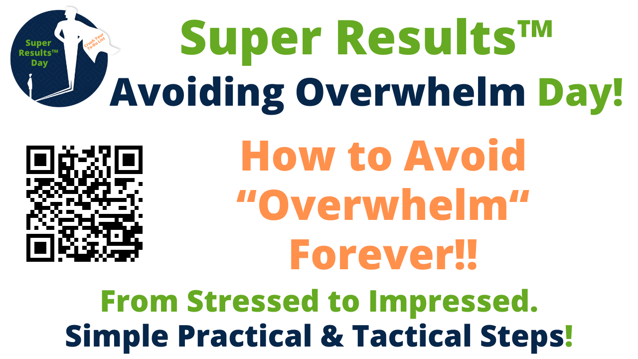 Friday, March 15th, we have a Super Results Day called Avoid Overwhelm Day. Join Blaine all day long as we crush your To-Do list while we remove Overwhelm and Overload from your life forever! Go from Overwhelmed to Overjoyed, Overdrive, Organized, Focused, and Ahead of Schedule!