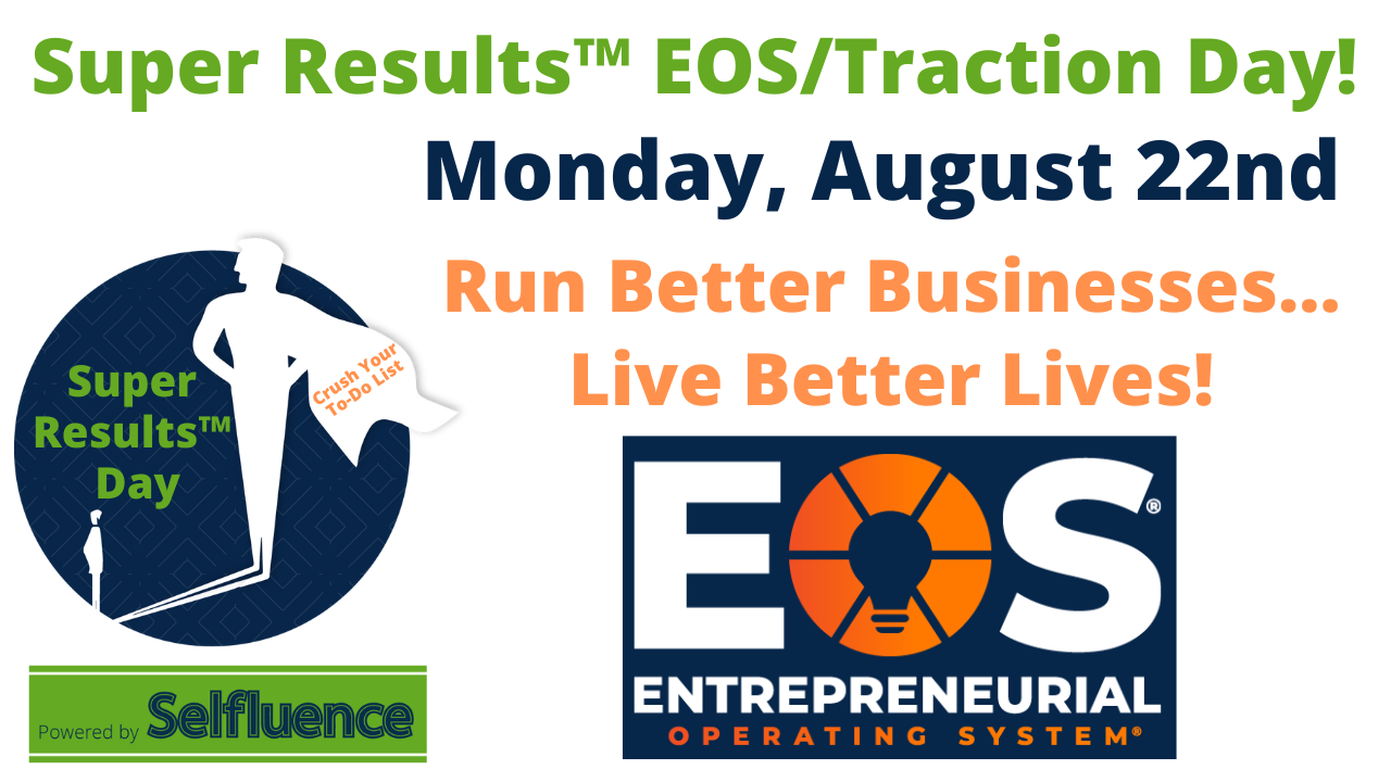 Monday, August 22nd, we have a Super Results™ Day called EOS/Traction Day. Join Blaine all day long as we crush your To-Do list while we learn how to use the famous Entrepreneurial Operating System (EOS) taught from the book Traction!
