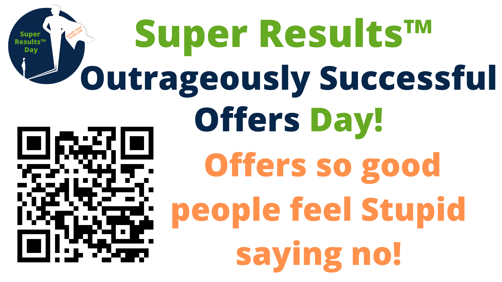On Friday, January 30th, we have a Super Results™ Day called Outrageously Successful Offers (OSO) Day. Join Blaine all day long as we crush your To-Do list while learning how to craft offers for your products and services that are so outrageous your future clients will feel STUPID saying no! (all VIRTUAL – do it from anywhere)
