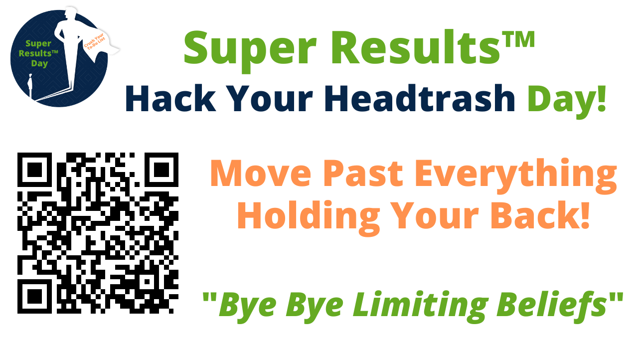 Friday, August 29th, we have a Super Results Day called Hack Your Headtrash Day. Join Blaine all day long as we crush your To-Do list while learning how to say goodbye to Limiting Beliefs and move past EVERYTHING holding you back! (all VIRTUAL – do it from anywhere)